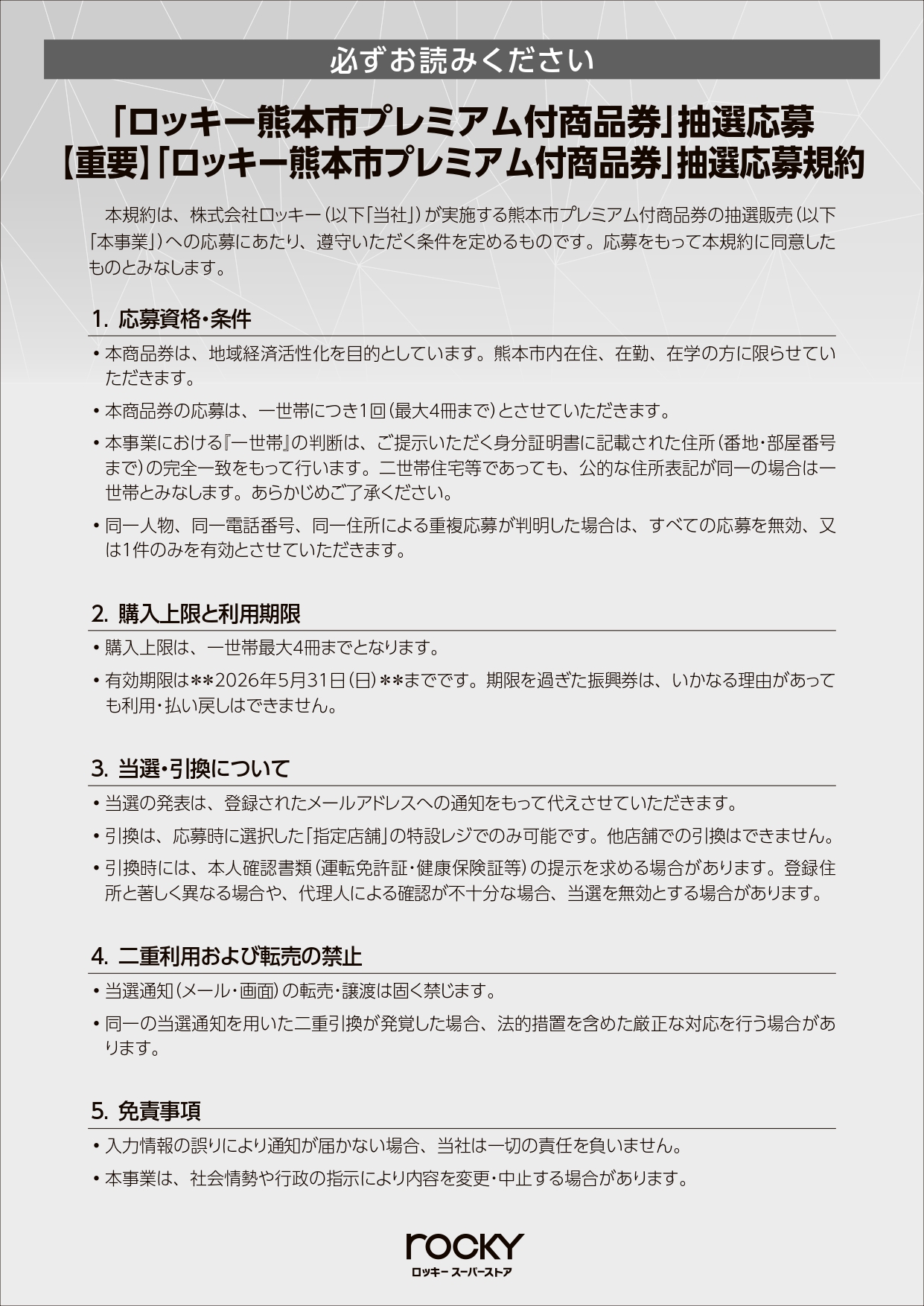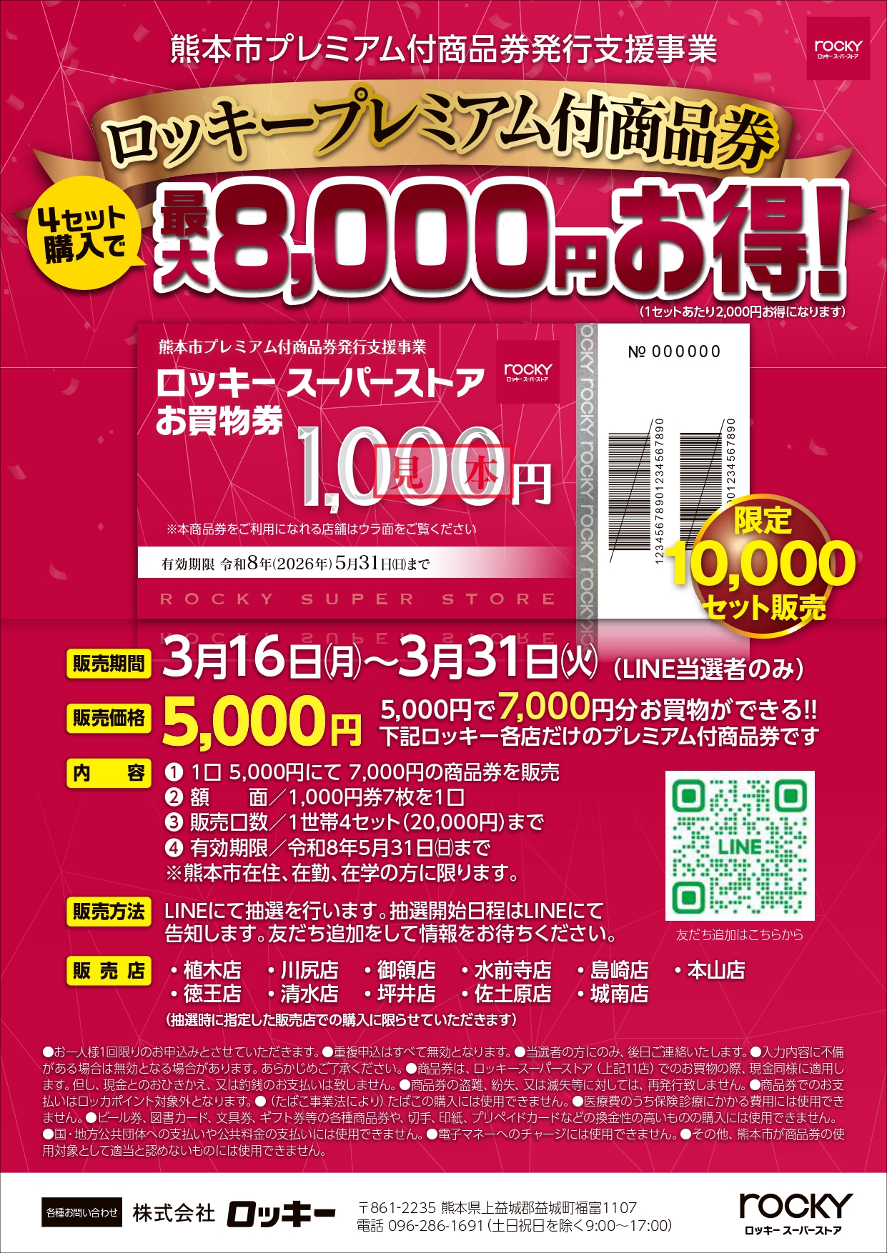 熊本市内のロッキー11店舗にて使用可能なプレミアム商品券を発売します。
